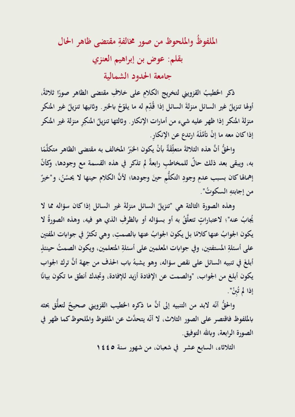 الملفوظ والملحوظ من صور مخالفة مقتضى الظاهر