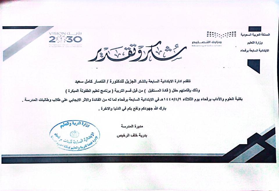 خدمة مجتمعية في المدرسة الابتدائية السابعة برفحاء (حفل قادة المستقبل)